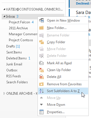 And finally, if you try it out for a while and don’t like it, there’s a button to go back to Outlook 2010 behavior where all folders are always sorted A-Z. Just switch to the Folder tab and turn on the Show All Folders A to Z feature. It will force your folders to be displayed alphabetically, regardless of what order they were in before.