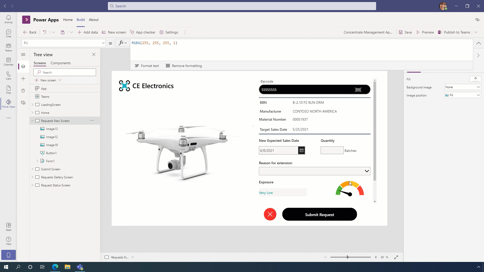 Visual showing example of Power App in action in Teams.