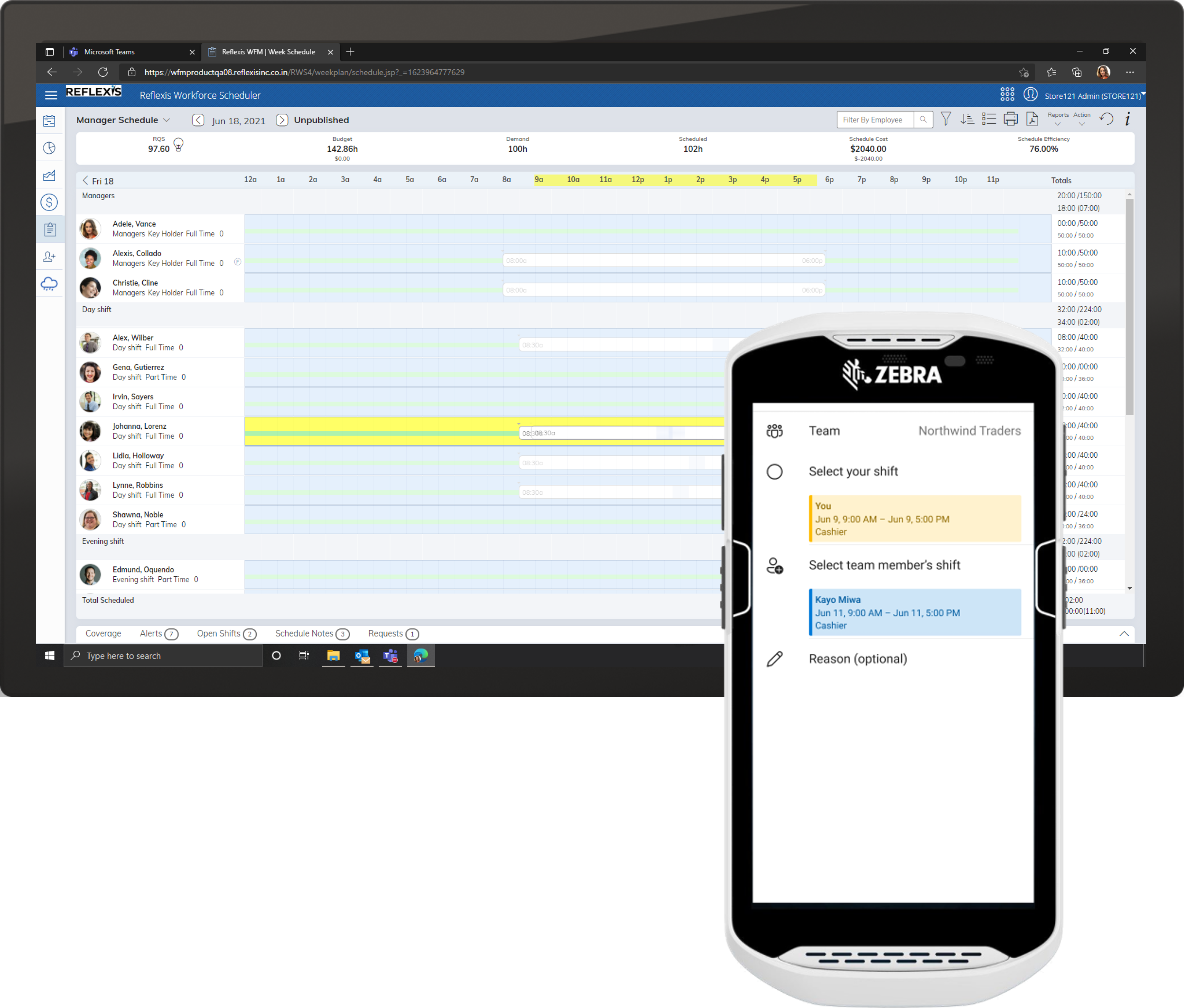 To continue providing workers with the flexibility to own their schedule, their own way, today we are announcing the general availability of the Reflexis Shifts connector for Teams which integrates with the Reflexis Workforce Scheduler (RWS) to create a seamless, real-time sync for viewing, assigning, and managing shift requests. As a leading workforce management solution, RWS provides targeted and flexible scheduling management. Together with Teams, RWS helps drive worker autonomy, delivers optimized scheduling, and gives organizations a new opportunity to provide frontline workers with access to their schedules in a consistent and flexible manner.